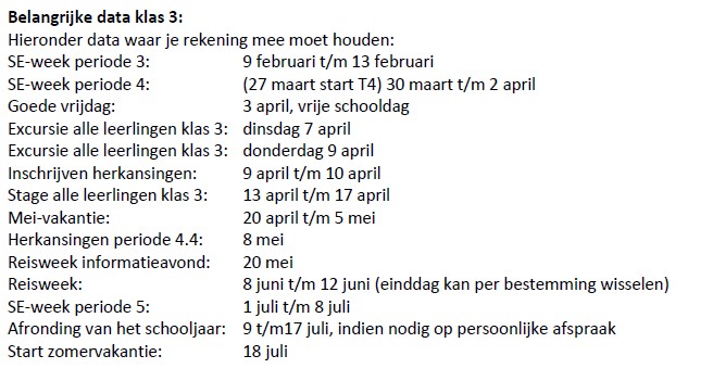 De derde schoolexamen week start op maandag 9 februari. Voor klas 3 wordt het vak