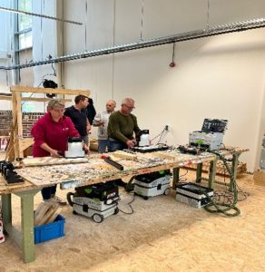 Een ieder maakte kennis met deze machine en maakte hiermee een mooie waterpas van hout. De heren van Festool hadden alles keurig voorbereid en men was dan ook enthousiast over de Shaper freesmachine.